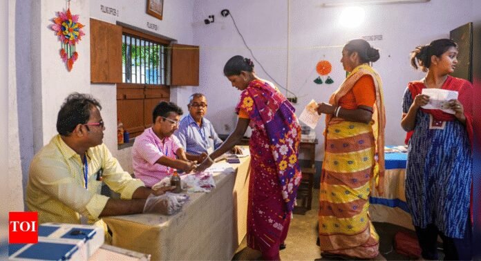 Bypolls conducted across five Assembly segments in Punjab, West Bengal, Gujarat and Kerala on Thursday recorded high percentages of voter turnouts. Kaliganj in West Bengal – 69.85% polling by 5 pmVisavadar in Gujarat – 54.61% by 5pmKadi in Gujarat – 54.49% by 5 pmNilambur in Kerala – 59.68% by 3 pmLudhiana West in Punjab – 49.07% by 5 pmThe electoral process, which began at 7 am and ended at 6 pm, remained predominantly peaceful, barring a few isolated incidents, according to officials.The bypolls were required in Gujarat, West Bengal and Punjab due to the passing of sitting MLAs, whilst in Kerala and another Gujarat seat, the elections were prompted by legislative resignations.Results are scheduled for June 23.Kaliganj“Polling in Kaliganj has been peaceful. There was no report of any incident from anywhere in and around the constituency. Till 5 pm, the polling was 69.85%,” an election official told PTI.The vacancy arose following TMC MLA Nasiruddin Ahamed’s death in February. The TMC selected his daughter, Alifa Ahamed, as their candidate. BJP nominated Ashis Ghosh, whilst Congress fielded Kabil Uddin Shaikh, supported by the CPI(M).To ensure fair elections, fourteen central force companies were stationed throughout the constituency.Several polling stations reported minor disturbances. At booth 56 in Chandghar Adarsha Vidyapith, Congress officials claimed their polling agent was forcibly removed by TMC workers, which the ruling party denied. Electoral officials confirmed no rule violations but requested a district magistrate report regarding the incident.EC officials removed party symbols within 100 metres of polling stations. Mobile phones were prohibited inside voting areas, with designated storage spots supervised by EC-appointed volunteers.NilamburThe constituency’s 263 polling stations saw substantial participation from its 2.32 lakh registered voters.The main contestants among ten candidates include LDF’s M Swaraj, UDF’s Aryadan Shoukath, independent candidate P V Anvar (TMC state convenor), and NDA’s Mohan George.Anvar, whose resignation necessitated the bypoll, discussed constituency developments during his tenure. He noted that wildlife conflicts weren’t addressed by any front – UDF, LDF or NDA – during campaigning.Anvar resigned following allegations against chief minister Pinarayi Vijayan and associates, subsequently becoming TMC state convenor.Gujarat’s Visavadar and KadiBJP, Congress and AAP contested both seats.Visavadar became vacant in December 2023 after AAP legislator Bhupendra Bhayani joined BJP. The Kadi seat, reserved for SC candidates, was vacated following BJP MLA Karsan Solanki’s death on February 4. AAP fielded former Gujarat president Gopal Italia, who isn’t registered locally.BJP hasn’t won Visavadar since 2007 despite dominating Gujarat. Bhayani defeated BJP’s Harshad Ribadiya by 7,063 votes in 2022. BJP nominated Rajendra Chavda for Kadi, while Congress selected former MLA Ramesh Chavda. Chavda won in 2012 but lost to BJP’s Karsanbhai Solanki in 2017. AAP’s Jagdish Chavda makes it a three-way contest.Gujarat’s 182-member Assembly comprises 161 BJP, 12 Congress, 4 AAP legislators, one SP member and two independents.Ludhiana WestThe seat became vacant after AAP MLA Gurpreet Bassi Gogi’s death in January. AAP’s Sanjeev Arora voted with family after visiting religious sites. Congress’s Bharat Bhushan Ashu, BJP’s Jiwan Gupta and SAD’s Parupkar Singh Ghuman cast their votes.EC implemented webcasting at 1,353 of 1,354 polling stations.