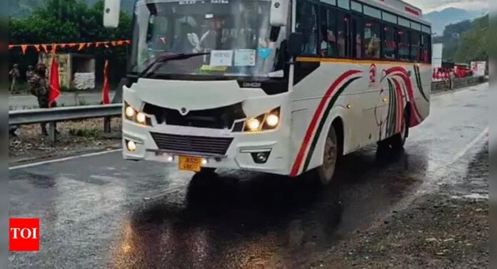 JAMMU: A Pahalgam-bound vehicle part of the Amarnath Yatra convoy hit a divider in Udhampur’s Chenani area early Wednesday, leaving the driver injured, even as four passengers escaped unscathed.Preliminary probe suggested the driver may have dozed off at the wheel, leading to the accident around 6.17am. “The injured driver, Shashikant, is a resident of Haryana’s Karnal. He was admitted to Udhampur GMCH with a head injury,” said an official.Meanwhile, the eighth batch of Amarnath yatris — comprising 7,579 pilgrims — set out early Wednesday from Jammu’s Bhagwati Nagar base camp for the holy cave shrine nestled in the Himalayas. Of them, 3,031 pilgrims chose to travel via the Baltal route, while 4548 devotees opted for the traditional Pahalgam route, officials said.Last week, 36 were injured when four buses ferrying Amarnath pilgrims had a chain collision in Ramban’s Chanderkote on the Jammu-Srinagar NH on July 5. On July 3, two yatris were injured inside Tunnel no. 3 of the NH’s Khooni Nala section when their car hit a minibus.This year’s annual Amarnath Yatra commenced on July 3 and will conclude on Aug 9 (Shravan Purnima/Raksha Bandhan).