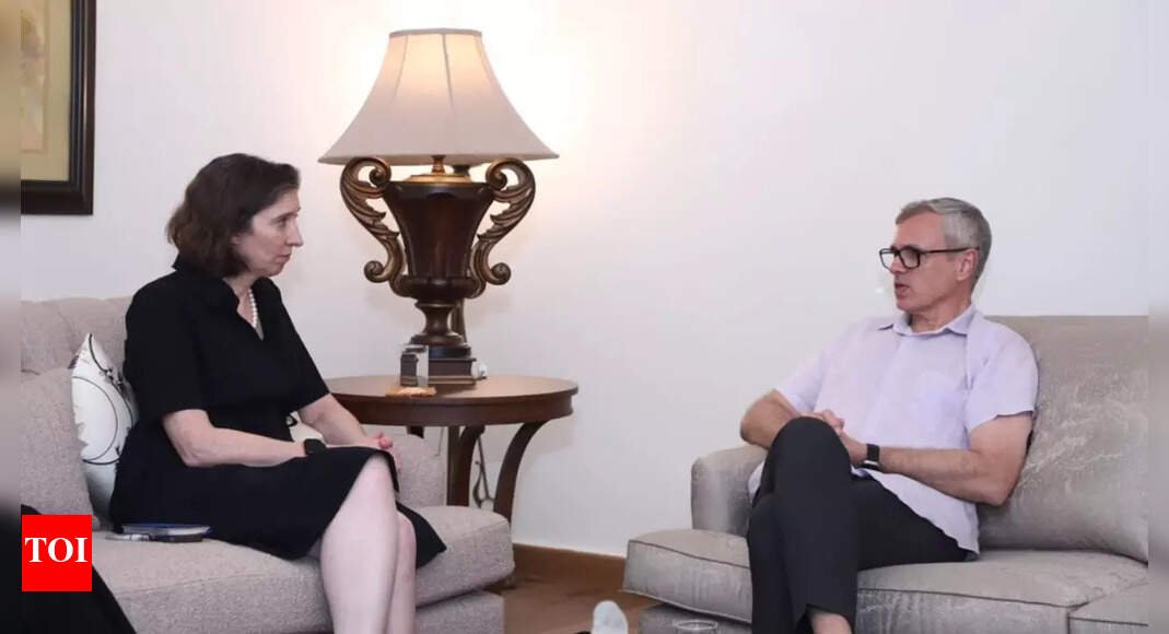 SRINAGAR: The British high commissioner to India, Lindy Cameron, met Jammu and Kashmir chief minister Omar Abdullah along with her team in New Delhi on Monday.The CM’s office posted on X about the meeting, but did not divulge anything about the nature of discussions. Tanvir Sadiq, the chief spokesperson of governing National Conference (NC) who was present at the meeting, described it as a “courtesy call.”The British delegation also included Alexandra Knowles, deputy head of political and bilateral affairs, and Bhavna Vij, senior political economy adviser.In Aug last year, US diplomats, including minister-counsellor for political affairs Graham Mayer, first secretary Gary Applegarth, and political counsellor Abhiram had met Omar, Peoples Conference leader Sajad Lone and MP Aga Ruhullah Mehdi in Srinagar ahead of the J&K assembly elections.After the abrogation of Article 370, the central govt has regularly invited and escorted foreign envoys to Kashmir. The first such visit took place on Jan 1, 2020, when most political leaders, including Omar, Lone and Mehbooba Mufti, along with hundreds of others, were detained under the Public Safety Act and were lodged in different sub-jails.On Feb 10-11, 2020, envoys from 25 countries, mostly from the European Union, visited Srinagar. The third such visit took place in Feb 2021, when a large number of European diplomats visited Kashmir, and met journalists and elected DDC representatives. On Aug 22, 2023, US diplomats led by Graham Mayer met LG Manoj Sinha at Raj Bhavan in Srinagar.