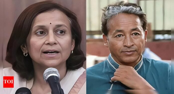 SRINAGAR: Jailed climate activist Sonam Wangchuk’s wife Dr Gitanjali J Angmo submitted Tuesday a detailed representation to Ladakh administration, National Security Act (NSA) advisory board, and Union home ministry, calling the charges against her husband “flimsy, childish and baseless”.The representation responds to the NSA order issued on Sept 27 and the grounds of arrest dated Sept 28, following the Sept 24 police firing in Leh that left four people dead and over 70 wounded during violent protests demanding statehood and Sixth Schedule status for Ladakh.“We have stated that the accusations against Sonam Wangchuk, based on videos, are very flimsy. His video speeches have been taken out of context,” Angmo said. “The NSA charge sheet cites several videos, but we have provided full versions with subtitles and transcripts to show that the allegations are baseless.”Angmo, co-founder of Himalayan Institute of Alternatives, Ladakh, said one of the videos cited by authorities was “grossly misinterpreted”. “In one clip, he refers to revolutions in Bangladesh and Nepal and Gen Z but clearly says ours should be peaceful. Authorities twisted this to claim he was calling for similar protests in Ladakh,” she said.Wangchuk began a 35-day hunger strike for Sixth Schedule safeguards and statehood on Sept 9, accusing Centre of delaying talks on Ladakh’s democratic rights. The home ministry had announced a new round of talks for Oct 6, but violence broke out on Sept 24, prompting him to break his fast. Authorities later arrested more than 70 people, including Wangchuk, who was subsequently moved to Jodhpur jail.Angmo said her husband’s case “is not about law and order but about silencing a voice that speaks for Ladakh’s people”.“NSA is meant for terrorists and smugglers,” Angmo said. “We have clearly stated that Sonam poses no threat, has never been a threat, and his arrest is an attempt to silence his voice and the peaceful movement for Ladakh’s statehood.”She questioned the timing and relevance of the charges. “The FIRs mentioned are old, and the videos are one year old. How can such videos incite a protest now?” she asked.She said 11 videos were listed, including unrelated ones. “For instance, during last year’s long march, Sonam was held briefly in New Delhi. When some youths in Ladakh observed a spontaneous bandh, it was attributed to him and his supporters. People love him — their actions were voluntary,” she said.According to Angmo, officials also misread Wangchuk’s remarks on the Ladakh Scouts. “They allege he demotivated the force in case of war with Pakistan or China. What he actually said was that border residents should be kept content so they can stand shoulder-to-shoulder with the Army,” she said.Angmo said another video was misquoted to suggest Wangchuk urged confrontation with China. “In reality, he was quoting a comedian and rejecting that view. He clarified that while one may differ with any political party, we will always stand with India and its Army,” she said.The representation was drafted by senior lawyer and Congress RS MP Vivek Tankha and others. He later wrote on X: “How can Govt even conceive detaining @Wangchuk66 (a Gandhian) under NSA after the kind of exemplary work he has done in Ladhak…. My appeal to Govt order his release…”