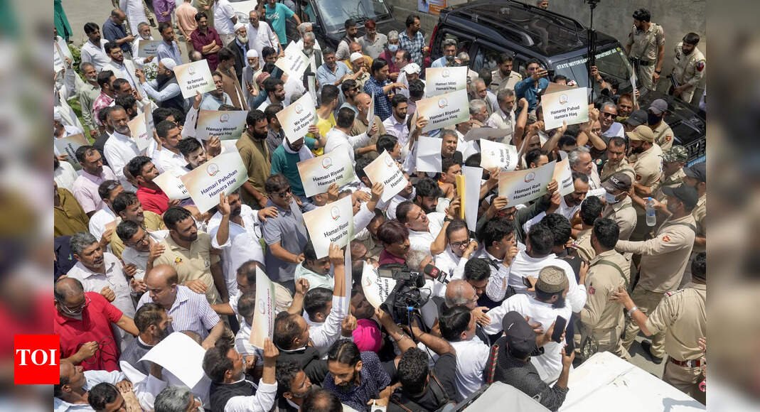 SRINAGAR: The Jammu and Kashmir administration deployed a heavy contingent of police and paramilitary forces outside the Congress headquarters in Srinagar on Saturday, preventing a planned march demanding the restoration of full statehood.Congress’s J&K unit chief, Tariq Hameed Karra, and party general secretary G A Mir, were present at the party office to lead the march to the divisional commissioner’s office, where they intended to submit a memorandum addressed to the Prime Minister. However, police sealed the main gate and barred party workers from leaving the premises.“This is undemocratic and a sign of administrative frustration,” Karra told reporters, alleging that Congress workers from various parts of the Valley were prevented from entering Srinagar.He added that the party would intensify its campaign during the upcoming Parliament session.Mir criticised the Centre for failing to restore J&K’s statehood even ten months after an elected govt was formed. “The Centre has not moved an inch in this direction. Instead, they have complicated governance in J&K through a dual power structure,” he said.