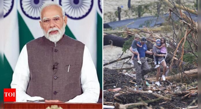 NEW DELHI: Prime Minister Narendra Modi on Saturday shared his condolences for the people affected by the deadly floods in Texas, USA.In a post on X, he wrote, “Deeply saddened to learn about loss of lives, especially children in the devastating floods in Texas. Our condolences to the US Government and the bereaved families.“At least 27 people have died in the floods, including nine children, according to local officials.Rescue teams were searching for many missing people, including girls from a summer camp, after a strong storm caused a wall of water to rush down the Guadalupe River in Texas Hill Country. The floodwaters rose 26 feet (around 8 meters) in just 45 minutes early Friday morning, sweeping away houses and cars.The danger isn’t over yet, as more heavy rain is expected, as reported by Associated Press. Flash flood warnings are still active in parts of central Texas.City manager Dalton Rice said that 27 people were missing from Camp Mystic, a Christian summer camp for girls. Many others were also unaccounted for in different areas.Rescue teams are using helicopters, boats, and drones to search for missing people and help those trapped by the floods.