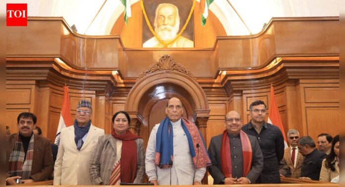 Today, in the Delhi legislative assembly, the portraits of former Prime Minister and Bharat Ratna Atal Bihari Vajpayee and Bharat Ratna Mahamana Pandit Madan Mohan Malaviya were unveiled in the House by Union defence minister Rajnath Singh. The ceremony was held in the presence of chief minister Rekha Gupta, Speaker of the assembly Vijender Gupta, and chairman of the Indira Gandhi National Centre for the Arts, Padma Bhushan Shri Ram Bahadur Rai.On the occasion, a commemorative coffee table book titled ‘Bharat Mata’ was also released to mark the completion of 150 years since the composition of the national song ‘Vande Mataram’.The deputy Speaker of the Delhi legislative assembly, Mohan Singh Bisht, Delhi government cabinet minister Pravesh Sahib Singh, and other public representatives were also present.Addressing the gathering, chief minister Rekha Gupta said that the unveiling of the portraits along with the coffee table book within the Delhi Legislative Assembly complex, is a historic and inspiring moment for the assembly. She added that both these towering personalities symbolise the resolve of ‘nation first’, integrity, farsightedness and public welfare. Recalling the contributions of Mahamana Pandit Madan Mohan Malaviya in the fields of education, the freedom movement and national consciousness, Rekha Gupta said that the establishment of institutions such as Banaras Hindu University stands as testimony to his visionary and value-based approach to education.Referring to revered Atal Bihari Vajpayee as a statesman of an era, she said that the foundation of development and national unity laid by him is today forming the basis of India’s rapid progress.CM Rekha Gupta further stated that the coffee table book ‘Bharat Mata’ is dedicated to the creative and artistic expression of Indian national consciousness, and will serve as a source of inspiration for students, researchers, and policy-makers.The CM expressed her gratitude to Prime Minister Narendra Modi. She said that inline with the PM’s vision, the Delhi government is also working with firm commitment towards the goal of ‘Viksit Bharat 2047’.
