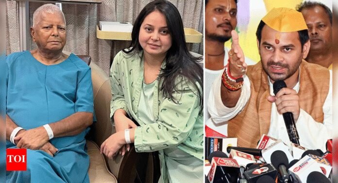 NEW DELHI: Tej Pratap Yadav on Monday again launched a strong attack on individuals within his family and RJD, accusing them of acting like “traitors” and warning that he would not accept any insult directed at his sister.His remarks come days after RJD chief Lalu Prasad Yadav’s daughter Rohini Acharya announced her exit from politics and severed ties with the family, a move followed by three of her sisters reportedly leaving the Patna residence amid the escalating dispute.In a post on X, the Janshakti Tej Pratap wrote: “We will not tolerate any insult to our sister under any circumstances; the traitors will surely have to pay the price for this misconduct!”“The abuse that was done to our Rohini di by Jaichand, this incident has shaken my heart to the core. What happened to me, I have endured, but what happened to my sister — that insult is absolutely unacceptable under any circumstances. Listen, Jaichand, if you attack the family, the people of Bihar will never forgive you,” Tej Pratap added in his post.This marks the latest development in months of turmoil within the Yadav family, which saw Tej Pratap himself expelled from both the RJD and the family following a bitter dispute over his personal life.Earlier, on Sunday, following Rohini Acharya’s announcement, Tej Pratap shared an emotionally charged post on his party’s Instagram account, warning those he described as “traitors” and appealing directly to his father. “Yesterday’s incident has shaken me to the core. What happened to me — I endured it. But the insult done to my sister is absolutely unbearable under any circumstances. Listen, traitors— if you target our family, the people of Bihar will never forgive you. When the emotions of the people are wounded, the dust covering their judgment is blown away,” he wrote.He also accused them of influencing his brother Tejashwi’s political judgment. “These few faces have even clouded Tejashwi’s judgment. The consequences of this injustice will be extremely grave. Time’s reckoning is harsh,” he added.The JJP chief also urged Lalu Prasad Yadav to intervene: “Father, give just one signal… just one gesture, and the people of Bihar themselves will bury these traitors. This is not a fight of any political party — it is a fight for the family’s honour, for the dignity of daughters, and for the self-respect of Bihar.”The controversy comes in the wake of Rohini Acharya’s social-media post on Sunday in which she alleged humiliation, abuse and expulsion from her parental home.She claimed she was “disgraced, abused, and even hit” after questioning the leadership over RJD’s poor performance in the Assembly elections. Rohini had named responsible for the family rift, claiming their actions prompted her decision to quit politics and leave her parents’ home.