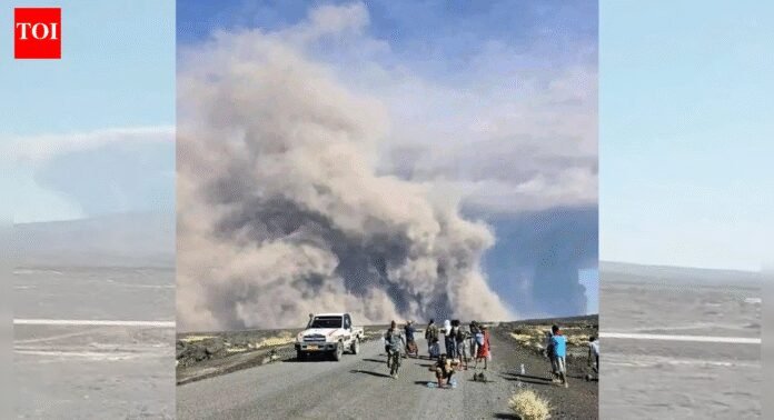 NEW DELHI: The Directorate General of Civil Aviation (DGCA), on Monday issued an advisory directing airlines to avoid altitudes and regions affected by volcanic ash from Ethiopia’s Hayli Gubbi eruption, which occurred on Sunday. According to the advisory, airports have also been asked to inspect runways for ash contamination and suspend operations if necessary. Officials said flight disruptions are likely as the situation evolves, reported ANI.Ash plumes from the Hayli Gubbi volcano are expected to move eastward towards Delhi and Jaipur starting Monday evening, with early movements projected near Jamnagar around 5.30pm. Airlines and aviation authorities are monitoring potential impact on flight paths, and some services have already been affected. IndiGo’s Kannur–Abu Dhabi flight (6E 1433) diverted to Ahmedabad on Monday to avoid the plume zone, while another Indian carrier’s aircraft that landed in Abu Dhabi underwent detailed engine checks before its return leg.“We know the areas impacted by ash plumes and are taking detours to avoid flying there,” a senior official of an Indian carrier told TOI. In a statement on X, Akasa Air noted, “We are closely monitoring the volcanic activity in Ethiopia and its potential impact on flight operations… passenger safety and well-being is our utmost priority.”The plume is drifting beyond Oman and Yemen, with intensity expected to reduce as it travels over land and sea. However, Delhi and Jaipur airspace remain areas of concern as authorities track the ash cloud’s movement.