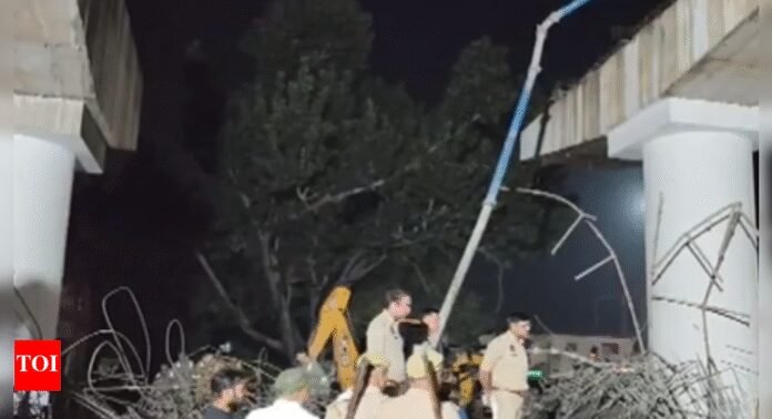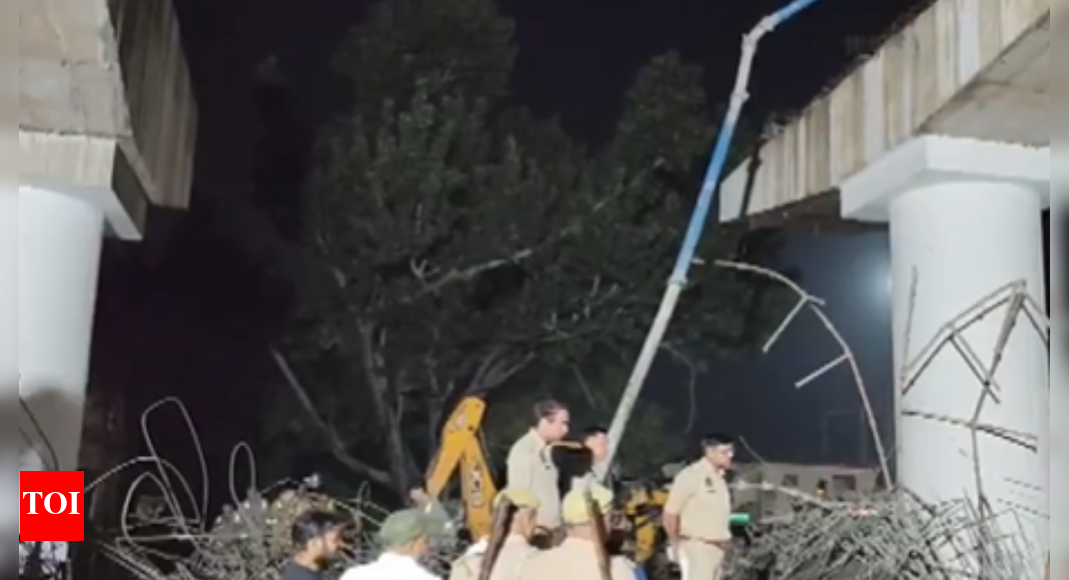 NEW DELHI: An under-construction railway over-bridge collapsed in Firozabad, Uttar Pradesh, on Wednesday. Officials arrived at the scene, reported ANI.There are no reports of any casualties. More details are expected as rescue operations are underway.