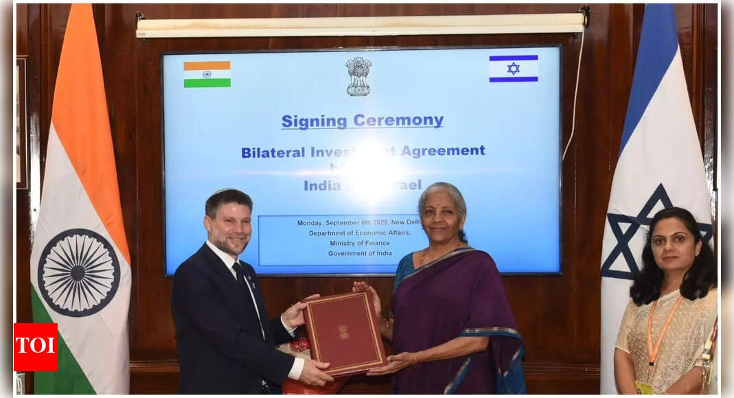 NEW DELHI: India and Israel on Monday signed a bilateral investment agreement as part of efforts to bolster economic ties. In the process, Israel has become the first Organisation for Economic Co-operation and Development (OECD) member state to sign a “strategic agreement” in accordance with India’s new model for investment treaties. The agreement – signed by finance minister Nirmala Sitharaman and her Israel counterpart Bezalel Smotrich – replaces the previous one signed in 1996, which was terminated in 2017 as part of India’s policy on investment treaties.“The agreement is expected to boost investments, provide greater certainty and protection for investors, facilitating growth of trade and mutual investments by ensuring a minimum standard of treatment, and an independent dispute resolution mechanism through arbitration,” finance ministry said in a statement.It said, “The agreement also includes provisions to safeguard investments against expropriation, ensure transparency, and enable smooth transfers and compensation for losses. At the same time, it carefully balances investor protection with the State’s regulatory rights, preserving sufficient policy space for sovereign governance.” The treaty will help boost investment from both countries, estimated at $800 million, it said.Israeli finance ministry said both sides will also examine establishment of a bilateral financial protocol between the govts, which would provide improved financing conditions for Israeli exporters. TNN
