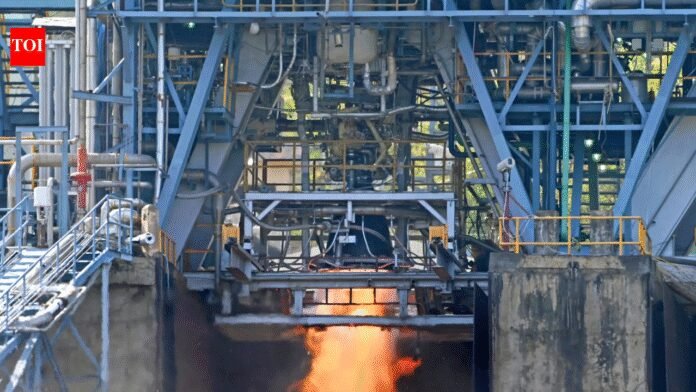 BENGALURU: Isro Thursday said it successfully conducted a sea-level hot test of its CE20 cryogenic engine at 22-tonne thrust at the Isro Propulsion Complex on March 10.The CE20 engine powers the upper cryogenic stage of the LVM-3 launch vehicle. The latest test was carried out using a nozzle protection system and a multi-element igniter.“Earlier, sea-level tests using the nozzle protection system were conducted at a thrust level of 19 tonnes. The latest trial qualifies sea-level testing of the engine at the higher 22-tonne thrust level. The test lasted 165 seconds,” Isro said.Isro plans to operate future LVM-3 missions with an uprated C32 cryogenic stage delivering 22-tonne thrust from the CE20 engine in order to enhance the rocket’s payload capability. “As a result, the flight acceptance test of the CE20 engine will also need to be conducted at the higher thrust level,” Isro said.The space agency said testing the CE20 engine at sea level poses significant challenges due to the engine’s high area-ratio nozzle, which has an exit pressure of about 50 mbar. A key concern during such tests is flow separation inside the nozzle, which can cause severe vibrations and thermal stress at the separation point and potentially damage the nozzle.According to Isro, the cryogenic engine used in the latest trial has undergone a record 20 successful hot tests. These tests have enabled the demonstration of several technologies using a single engine.“These include ignition using a multi-element igniter, ignition margin demonstration for Gaganyaan mission across a wide range of propellant tank pressures and pre-ignition chamber pressures, and engine qualification for Gaganyaan at 20-tonne thrust level,” Isro added.The tests also demonstrated and qualified operation at 22-tonne thrust, the boot-strap mode start of the CE20 engine without a start-up system to enable in-flight restart, qualification of indigenous turbopump bearings and sensors, and qualification of the nozzle protection system for hot tests of a high area-ratio nozzle at sea level.Isro said the performance of the engine and the test facility remained as expected throughout the test duration.