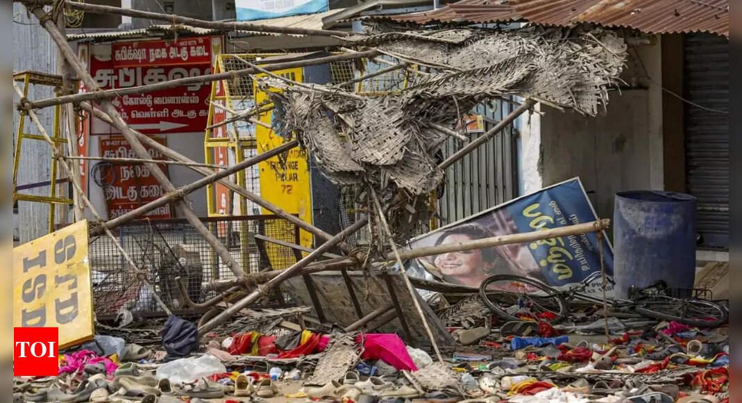 NEW DELHI: Chennai police on Monday arrested three individuals for allegedly spreading rumours about the Karur stampede that killed 41 people during a political rally on Saturday. The arrested include Sahayam, 38, BJP State Secretary (Art & Culture) from Perumbakkam; Sivaneswaran, a member of Tamilaga Vetri Kazhagam (TVK) from Mangadu and Sarathkumar, 32, TVK’s 46th Ward Secretary from Avadi.The stampede occurred during a rally organized by TVK leader and actor Vijay in Velusamypuram, Karur, leading to the deaths of 41 individuals, including women and children. Over 60 others were hospitalized, with several in critical condition. The tragedy has prompted widespread outrage and calls for accountability.The tragedy was triggered by overcrowding, Vijay’s delayed arrival and infrastructure failures, including a sudden power outage and the collapse of a temporary shed, which led to panic and a deadly crush.In response to the incident, TVK has alleged that the stampede was engineered by the police and members of the ruling DMK party, including former Minister V Senthil Balaji. Vijay has alleged a political conspiracy behind the incident and has moved the Madras High Court’s Madurai bench, requesting an independent investigation by the Central Bureau of Investigation (CBI) or a Special Investigation Team (SIT).Tamil Nadu chief minister MK Stalin expressed condolences to the victims’ families and announced compensation of Rs10 lakh for each deceased and Rs 1 lakh for the injured.He also ordered the formation of an inquiry commission headed by a retired High Court judge to investigate the incident.The stampede has sparked widespread outrage, with posters demanding Vijay’s arrest appearing in Karur.