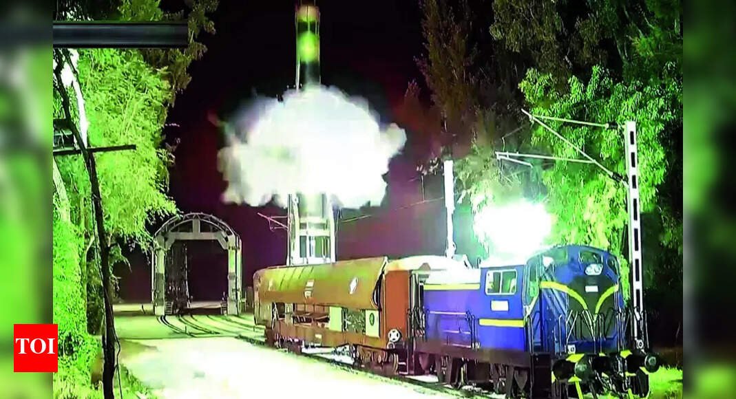 NEW DELHI: India successfully tested the new-generation nuclear capable Agni-Prime ballistic missile, which has a strike range up to 2,000km, from a rail-based launcher system for the first time on Wednesday night.With the road-mobile Agni Prime already being inducted into the tri-Service Strategic Forces Command (SFC), the specially designed rail launcher will enhance the operational flexibility, survivability and cross-country mobility of this smallest and lightest ballistic missile among the Agni series. “The rail launcher will allow SFC to launch on the go with a short reaction time, along with reduced visibility to enemy forces. Rail-based launchers, for instance, can escape detection by enemy satellites by hiding in tunnels,” an official told TOI. The Agni-Prime is a canister-launch missile system like the Agni-V, the country’s most formidable missile with a strike range of over 5,000km. In such systems, nuclear warheads are already mated with missiles in hermetically sealed canisters. Consequently, the canisters can be stored for longer periods without adverse weather impact, are easier to handle, and can be swiftly transported through rail or road to launch from wherever required.On Wednesday, DRDO and SFC conducted the test of the solid-propellant fuelled Agni-Prime “under a full operational scenario” from the rail launcher “having the capability to move on the country’s rail network without any preconditions”, the defence ministry said.The trajectory was tra-cked by various ground radar stations and met all mission objectives. “This successful flight test has put India in the group of select nations that have developed canisterised launch systems from on the move rail network,” defence minister Rajnath Singh said.An official said, “The system is self-sustained and equ-ipped with all independent launch capability features, including state-of-the-art communication systems and protection mechanisms.”Agni-Prime will gradually replace Agni-I (700km) and Agni-2 (2,000km) in the arsenal of the SFC, which also has Prithvi-2 (350 km), Agni-3 (3,000 km), Agni-4 (4,000 km) and Agni-5 ballistic missiles. India is also working towards strengthening its naval leg of the ‘nuclear triad’. The commissioning of India’s third SSBN (nuclear-powered submarine armed nuclear ballistic missiles) as INS Aridhaman will take pl-ace early next year after some delay. The first two SSBNs, INS Arihant and INS Arighaat, are fully operational.