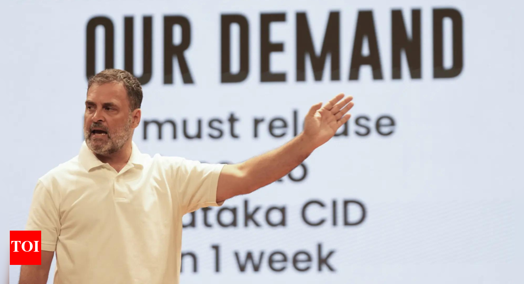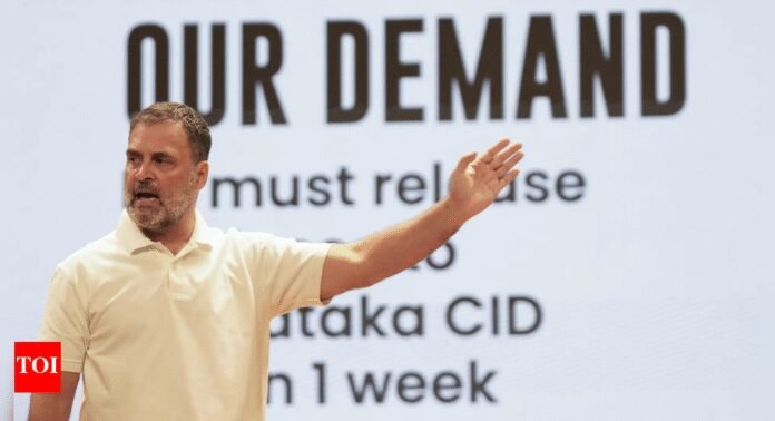 NEW DELHI: Leader of opposition in Lok Sabha Rahul Gandhi presented five evidence of mass deletions in Karnataka‘s Aland assembly constituency held by Congress MLA BR Patil.He claimed before the 2023 Karnataka assembly election ‘someone’ tried to delete as many as “6,018 votes.” He added, “nobody knows how many total votes were deleted…someone got caught while trying to delete these votes by coincidence.”He said a booth-level officer discovered her uncle’s vote had been deleted. Upon investigating, she found a neighbour’s name was falsely linked to the deletion- yet neither party was aware of the action, suggesting an external force had hijacked the process. “As luck would have it, they got caught,” he said.Gandhi claimed these 6,018 applications were filed impersonating voters – applications that the supposed applicants never actually submitted. “The filing was done automatically using software…Mobile numbers from outside Karnataka, from different states, were used to delete votes in Aland, specifically targeting Congress voters,” he alleged. Emphasising the political nature of the deletions, he added: “This wasn’t random. These deletions specifically targeted booths where the Congress party was winning.”