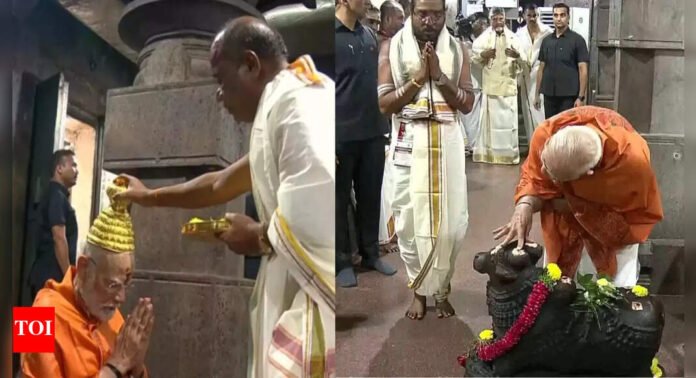 NEW DELHI: Prime Minister Narendra Modi on Thursday offered prayers and performed pooja at the Sri Bhramaramba Mallikarjuna Swamy Varla Devasthanam in Srisailam, located in Andhra Pradesh’s Nandyal district. Chief minister N Chandrababu Naidu accompanied the Prime Minister during the visit.Earlier in the day, CM Naidu extended a warm welcome to PM Modi as he arrived in the state to inaugurate and lay the foundation stone for several key development projects.In a post on X, Naidu wrote, “On behalf of my people of Andhra Pradesh, I warmly welcome our Hon’ble Prime Minister, Shri @narendramodi Ji, to our state.”Following his visit to Srisailam, PM Modi is scheduled to travel to Kurnool to inaugurate, dedicate to the nation, and lay the foundation stone for projects worth around Rs 13,430 crore. He is also expected to address a public gathering on the occasion, according to an official release.The projects span multiple sectors including industry, power transmission, roads, railways, defence manufacturing, and petroleum and natural gas, highlighting the government’s focus on boosting infrastructure, industrial growth, and inclusive development in Andhra Pradesh.The Sri Bhramaramba Mallikarjuna temple is one of the 12 Jyotirlingas and 52 Shakti Peeths in India. The shrine is unique as it houses both a Jyotirlinga and a Shakti Peeth within the same complex — a rare distinction among temples in the country.The Prime Minister will also visit the Sree Shivaji Spoorthi Kendra, a memorial complex featuring a Dhyana Mandir (meditation hall) surrounded by models of four iconic forts, Pratapgad, Rajgad, Raigad, and Shivneri, positioned at the four corners, with a statue of Chhatrapati Shivaji Maharaj in deep meditation at the centre.The Kendra is managed by the Sree Shivaji Memorial Committee, established in Srisailam to commemorate Chhatrapati Shivaji Maharaj’s historic visit to the sacred shrine in 1677.