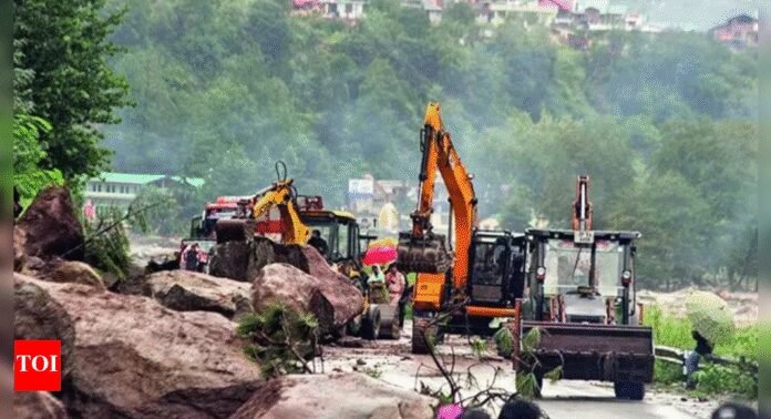 NEW DELHI: The National Highways Authority of India (NHAI) will airlift around nine heavy construction equipment for restoration of two stretches of the Kullu-Manali highway which has become inaccessible following heavy rain-triggered floods.On Monday, the highways authority said that restoration work is being taken up at 12 completely damaged locations on the Kullu-Manali section of national highway-21 and five partially damaged locations to restore connectivity to Manali from the rest of Himachal Pradesh.Besides the nine pieces of heavy construction equipment, NHAI said “around 70 machines have been deployed and an additional 20 machines are in transit.” Meanwhile, funds are being provided to the state govt to maintain an alternative road so that connectivity with Manali is restored, it said.Sources said the highways authority has submitted its request for airlifting of equipment to the Himachal Pradesh govt, which will forward the requisition to defence authorities. They added that since there is a ‘red alert’ (for heavy rain) for two more days, it may take time to start airlifting the equipment.On Tuesday, Kullu deputy commissioner Torul S Raveesh said NHAI was working across multiple sections of the NH-21 to ensure rapid restoration work. She told news agency ANI that NHAI needed to deploy machineries at all points for faster restoration, and hence, the need arised for airlifting of equipment to locations that currently lack connectivity.