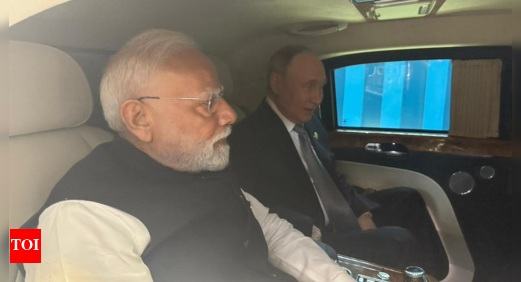 NEW DELHI: Prime Minister Narendra Modi and Vladimir Putin shared a ride in Russian President’s Aurus limousine on Monday as they left from the Shanghai Cooperation Organisation (SCO) summit.The two leaders used the ride, that was reportedly offered by Putin, to hold a private conversation that lasted nearly an hour before their formal bilateral meeting. “The two leaders continued their one-to-one dialogue on the way to the hotel where they were to be joined by members of their teams. However, on reaching the hotel they did not deboard the Russian president’s limousine and continued their conversation for 50 minutes,” reported PTI quoting Russian national radio station VestiFM. Kremlin spokesman Dmitry Peskov also later confirmed that the two leaders held a tête-à-tête inside the car for about an hour.Meanwhile, PM Modi shared a photo on social media with the Russian president inside the limousine, saying, “After the proceedings at the SCO Summit venue, President Putin and I travelled together to the venue of our bilateral meeting. Conversations with him are always insightful.”Commentators in Moscow described the extended private exchange as significant, suggesting it may have involved sensitive discussions “not for the ears of others.”During the formal talks that followed, PM Modi urged Putin to end the Ukraine conflict at the earliest, calling it humanity’s responsibility to seek lasting peace in the region.The Prime Minister also extended an invitation to the Russian leader. Putin is scheduled to visit New Delhi in December for summit-talks with the PM.Earlier in the day PM Modi also shared warm moments with Chinese President Xi Jinping along with Putin as they met on the sidelines of the summit. The three leaders exchanged handshakes, hugs and smiles in a rare display of camaraderie.