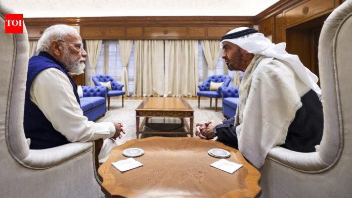 PM Narendra Modi on Monday extended a warm welcome to UAE president Mohamed bin Zayed Al Nahyan and his family at his residence and presented traditional Indian gifts to them. He gifted a royal carved wooden swing, a beautiful item from Gujarat which is hand-carved with detailed floral and traditional designs, showing skilled craftsmanship, officials said, adding that in Gujarati culture, the “jhula” symbolises togetherness, conversation and bonding across generations. The gift also resonates deeply with the UAE’s declaration of 2026 as the Year of Family, they said. Modi also gifted him a handmade pashmina shawl from Kashmir in an ornate silver box made in Telangana. A similar shawl in an ornate silver box was also gifted to Sheikha Fatima bint Mubarak Al Ketbi. She was also gifted Kashmiri saffron in an ornate silver box.