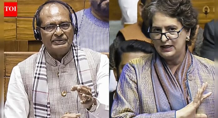 NEW DELHI: The Lok Sabha witnessed a major uproar as the opposition staged a protest while the government on Tuesday tabled Viksit Bharat Guarantee for Rozgar and Ajeevika Mission (Gramin) (VB-G RAM G) Bill, 2025, which seeks to replace MGNREGA.Several opposition MPs including Priyanka Gandhi, KC Venugopal and Manish Tiwari strongly objected the removal of Mahatma Gandhi’s name and demanded that the bill be referred to a parliamentary committee for detailed scrutiny.