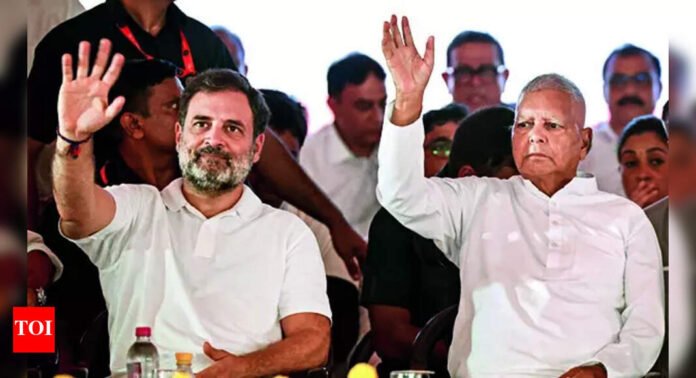 SASARAM: Reacting sharply to Election Commission‘s press conference on a day he along with INDIA bloc parties launched ‘Voter Adhikar Yatra’ in Bihar against the SIR exercise, leader of opposition in Lok Sabha and Congress functionary Rahul Gandhi on Sunday alleged that a law was brought in 2023 by BJP govt to ensure that no court can take action against election commissioners as the poll body is “helping them and is indulging in vote theft in collusion with them”.Amid loud sloganeering against “vote chori” and in the presence of RJD chief Lalu Prasad and leader of opposition in Bihar assembly Tejashwi Yadav, Rahul asked the crowd “apka mood kaisa hai” and after the audience settled to listen, he launched a scathing attack on BJP and RSS, accusing them of trying to “wipe-out” the Constitution by stealing elections. Addressing a public meeting in Aurangabad after launching the yatra in Sasaram, Rahul said, “I want to ask them why did govt change the law on CCTV footage of election process? Do you know that no case can be initiated against election commissioners. In no court in India can there be a case against them. This law was made in 2023. Why was this law made at this time?” Rahul alleged this law was made as PM Narendra Modi and home minister Amit Shah “want to ensure that no one can take any action against EC as it is helping them and is indulging in ‘vote chori’ along with them”. “EC is asking an affidavit from me but does not ask Anurag Thakur (BJP) for an affidavit when he says the same thing,” he alleged.On X, Rahul said, “EC declared living people as dead, removed from voter list people who had recently voted in LS elections. EC once again refuses to deliver digital, machine-readable voter rolls. Earlier, vote was stolen stealthily, stealthily and now, it is being done openly in the name of SIR.”Congress’ Jairam Ramesh on X said “as far as the CEC’s threats to Rahul are concerned, all that needs to be said is that the LoP had simply stated facts revealed by EC’s own data.” He said, “This was the first time this ‘new’ EC was speaking directly and not planting through sources” and that the presser came “three days after SC rejected every argument made by EC to prevent publication of the 65 lakh deleted voters during SIR”.