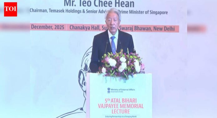 NEW DELHI: Singapore’s former deputy Prime Minister Teo Chee Hean said his country’s name is derived from Sanskrit and noted that its ties with India are ‘deeply rooted in history.‘Hean, who is the chairman of Singapore-based investment firm Temasek and serves as a senior advisor to Prime Minister Lawrence Wong, made the remarks in his speech at the 5th Atal Bihari Vajpayee Memorial lecture in Delhi on Tuesday.