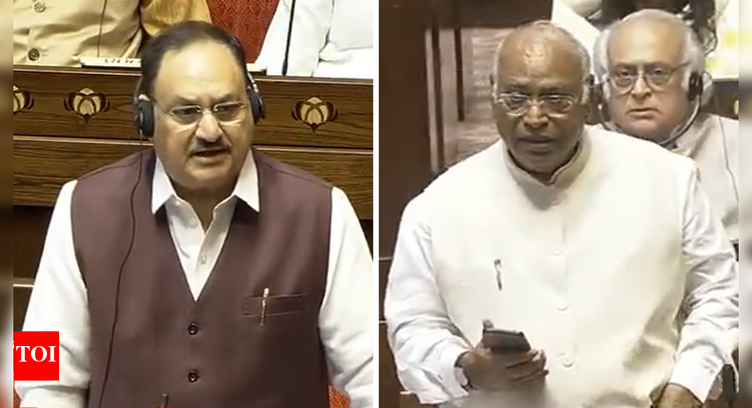 NEW DELHI: Rajya Sabha on Tuesday witnessed a storm after Congress leader Mallikarjun Kharge condemned the use of security personnel inside the House. The allegations from the leader of the opposition in Rajya Sabha led to a heated argument between him and Deputy Chairman Harivansh and BJP leaders. Reading a letter addressed to Rajya Sabha Deputy Chairman Harivansh, Kharge had expressed shock over how the CISF personnel entered the Parliament during opposition protests.“I want to thank you, sir, for the references you gave us, the ones we didn’t read, but you told us,” Kharge’s letter said.“I’m writing to you on behalf of the opposition parties in the Rajya Sabha. We are astonished and shocked at the manner in which CISF personnel were made to run into the well of the House while members were exercising their democratic right to protest. We saw this yesterday, and we saw it again today. Has our Parliament been reduced to such a level?” the LoP said.“This is most objectionable, and we strongly condemn it. We expect that in the future, CISF personnel will not come trooping into the well of the House when members are raising important issues of public concern,” he added.“This is not a huge thing. We are protesting in a democratic way, and we will continue to do so. That is our right,” Kharge asserted.Responding to Kharge’s allegations, Harivansh said the personnel were from the Parliament Security Service (PSS) and not CISF. “I want to clarify that only the Parliament Security Service can enter the House when needed. No CISF personnel were involved,” the Deputy Chairman clarified. But Kharge stood by his remarks, adding, “I condemn this. You can throw us out of the proceedings.”Union minister Kiren Rijiju stood and hit at Kharge, accusing him of “misleading” the House. “I would like to ask one thing for clarification. LoP is a very senior leader. Mallikarjun Kharge raised the question. He specifically said that military people would be brought in the House, CISF jawans were brought in and Delhi Police was brought in. This is clear in the record that only the Marshal can enter the House. Only the Marshals were here that day. So, LoP misled and presented false facts here. He has also written to you. When LoP writes a false letter to Chair and presents false facts, what action should be taken?” Rijiju said.Kharge didn’t stop here and said, “Even our previous leaders have maintained that disruptions are also a part of democracy.” “But I ask you today (Chair), who is running this House? You, or Union home minister Amit Shah?” Kharge asked. Responding to Kharge, Leader of House and Union minister JP Nadda took a jibe at him and said that he (Nadda) was in the opposition for over 40 years and they “should take tuition classes from me.” “I will tell them how the conduct of the Opposition should be. You have been there for only 10 years now. You have to be there for 30-40 years,” he added.He further said, “Regarding what the LoP said – there are different methods of disturbance. In a democracy, if you wield a stick and it hits me in the nose, your democracy ends where my nose starts. That you have to understand. This is not disturbance, this is anarchy. Also, any person who is in the House to maintain discipline and decorum by the order of the Chair is a Marshal; he is not any member of any paramilitary force.