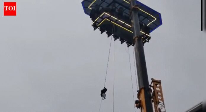 NEW DELHI: Several tourists were left suspended nearly 120 feet above ground at a private sky-dining facility in Kerala’s Anachal, Idukki, after a crane suffered a technical failure on Friday. The visitors remained stuck for over one and a half hours.Rescue teams arrived at the site and efforts to bring them down safely are under way.The incident occurred near Munnar where a crane-operated dining platform, part of an adventure tourism initiative, had been offering visitors an aerial dining experience. The system, introduced only a few months ago, allows up to 16 people to be seated at a time, lifting them high above the valley for about half an hour while they dine with panoramic views.According to local reports the platform could not be lowered due to a mechanical fault believed to be related to the crane’s fuse. Fire and security personnel deployed from Munnar are currently working on alternative methods, including lowering individuals using ropes. Rescue operations are continuing as engineers attempt to restore the system and bring all stranded tourists and staff back to ground level.