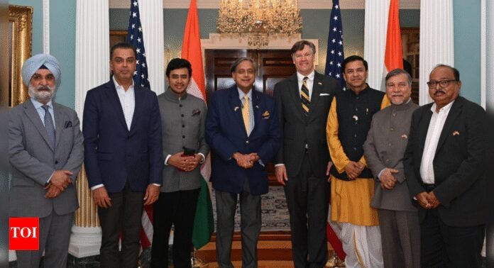 NEW DELHI: Congress MP Shashi Tharoor, leading an all-party parliamentary delegation to the United States, briefed key American officials on the escalating threat of cross-border terrorism faced by India and the country’s strong counter-response through Operation Sindoor. According to an official statement issued by the Embassy of India in the US, the delegation met deputy secretary of state Christopher Landau and held a wide-ranging conversation on regional security and India-US bilateral cooperation.The delegation informed the US official about the April 22 terror attack in Pahalgam, in which 26 people were killed and several injured, and outlined India’s subsequent military operation launched on May 7. “The delegation briefed him on the heinous terrorist attack in Pahalgam, discussed India’s subsequent Operation Sindoor, and put forth India’s firm resolve to counter cross-border terrorism in all its forms,” the Embassy said in a statement.The deputy secretary of state reaffirmed the United States’ “strong support” to India in its fight against terrorism, the statement added. The discussions also included avenues to deepen cooperation between the two countries in areas of shared interest.Tharoor also engaged with members of the US Senate Foreign Relations Committee. In separate meetings with Senator Chris Van Hollen and a phone call with Senator Cory Booker, the delegation shared insights on India’s security challenges and military actions. “Senator Van Hollen expressed deep sympathy for India and reaffirmed that the US stands firmly with India in the fight against terrorism,” BJP MP Tejasvi Surya posted on X following the meeting.Congress MP Tharoor also said on X that he had a “warm & productive” conversation with Senator Cory Booker. “Outlined the repeated provocations of terrorism emanating from across the border, laid out the details of Operation Sindoor, and emphasized India’s firm resolve in countering any future acts of terrorism,” Tharoor wrote.The delegation participated in a special dinner hosted by the Indian Ambassador, where former envoy Taranjit Singh Sandhu said on X, “Delighted to meet so many old friends and supporters of India-US partnership at Ambassador’s dinner.”Tharoor also addressed the US media at the National Press Club in Washington in a session moderated by Indian-American journalist Poonam Sharma. “A lively session… spanned a wide range of issues related to Operation Sindoor and India’s actions against terrorism,” he wrote.The all-party delegation includes MPs from various political parties: Shambhavi Chaudhary (Lok Janshakti Party), Sarfaraz Ahmed (Jharkhand Mukti Morcha), G M Harish Balayogi (TDP), Shashank Mani Tripathi, Tejasvi Surya, and Bhubaneswar Kalita (BJP), Mallikarjun Devda (Shiv Sena), and Milind Deora (Shiv Sena), along with former Indian Ambassador Taranjit Singh Sandhu.India launched Operation Sindoor as a direct response to the Pahalgam attack, targeting terror infrastructure in Pakistan and Pakistan-occupied Jammu and Kashmir. Over 100 terrorists linked to groups such as Jaish-e-Mohammed, Lashkar-e-Taiba, and Hizbul Mujahideen were killed.