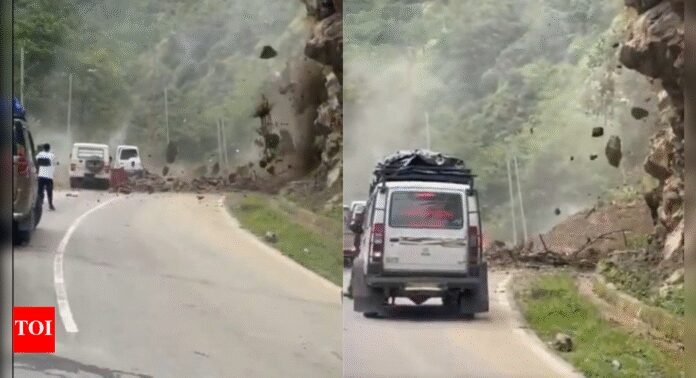 Watch: Commuters flee as rocks fall in Arunachal; border route blocked by landslide