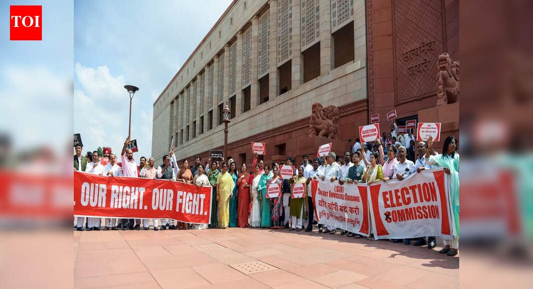 NEW DELHI: The issue of Special Intensive Revision (SIR) triggered the expected uproar as the winter session of Parliament opened on Monday, setting the stage for the electoral roll revision debate to dominate proceedings in the days ahead. The winter session is scheduled to conclude on December 19.Addressing the media ahead of the session, Prime Minister Narendra Modi urged lawmakers to focus on substantive issues. “I would request everyone to think about the matters at hand. There is plenty of space for drama elsewhere; whoever wants to do it can. Yahaan drama nahi, delivery honi chahiye (There should be delivery here, not drama),” he said.Also Read | ‘Drama nahi delivery’: PM Modi takes jibe at opposition; hails democratic spirit ahead of Parliament Winter SessionIn what appeared to be a swipe at the Opposition, he added, “Those who want to raise slogans can do so outside — the whole country is there, and you have already done it after the Bihar election defeat. But inside Parliament, the emphasis should be on policy, not slogans.”Here’s who said what on SIR in Parliament:NDAKiren Rijiju (Parliamentary affairs minister): “Opposition demand for discussion on SIR is under govt’s consideration. It is not rejected. The govt is not averse to take up discussion on anything, including SIR, electoral reforms; give some time to respond. Do not put a condition on timeline for discussion on SIR, electoral reforms.”Chirag Paswan (Union minister and LJP MP): “”Over a singular issue of SIR, the opposition will wash out an entire session of the Parliament. Such things affect first-time MPs, who really want to work for their constituencies and want to raise issues on the floor of the house. The Prime Minister’s concern is legitimate because we have just these 5 years to work for my people and country.”Sanjay Jha (JD(U) MP): “The last session was also washed out over the issue of SIR. At that time, SIR was underway in Bihar… The Election Commission had asked all parties to file their complaints in case there are any discrepancies in the process, but not one party filed any complaint.Jagdambika Pal (BJP MP): “If they (opposition) create a ruckus in the House and gather in the well, then they don’t want a discussion on the SIR, they want to stall proceedings. What discussion do they want on the SIR? People of Bihar have given their mandate and answer on their SIR issues.”OppositionPriyanka Gandhi Vadra (Congress MP): “Election situation, SIR, and pollution are huge issues. Let us discuss them. What is the Parliament for? It’s not drama. Speaking about and raising issues is not drama. Drama is not allowing democratic discussions about issues that matter to the public.”Saugata Roy (TMC MP): “Opposition will stand by their principles. There are key issues such as SIR and the terrorist attack in Delhi, which the opposition will consistently raise… We will also address the non-payment of dues to states.”Abhishek Banerjee (TMC MP): “What opposition is asking is a debate on SIR. Is it drama? If raising people’s voices is drama, then people will give them a reply in the next election. 40 people, including BLOs, died. They have blamed ECI. Where is accountability from the government? We are not against SIR, but we are against the method and way it is being executed.”Akhilesh Yadav (Samajwadi Party MP): “The worry over SIR is becoming real today. If a vote is cut, then how will a person fulfill his/her dream…This ongoing SIR is not for strengthening democracy but cutting votes. On the ground, the BLOs are not even able to fill out forms; many of them are under stress…Why this hurry, when there is no election in UP immediately?”Kanimozhi (DMK MP): “The opposition wants a discussion about the SIR, about the electoral process of the country, and protecting the democracy. That is what we have been requesting.”