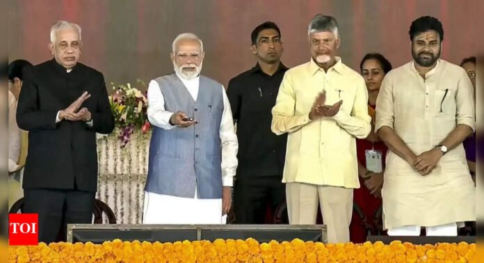 NEW DELHI: Prime Minister Narendra Modi on Thursday inaugurated and laid the foundation for several development projects worth Rs 13,430 crore across Andhra Pradesh, declaring that the state has entered a new phase of accelerated progress under Chief Minister N Chandrababu Naidu and deputy Chief Minister Pawan Kalyan.Speaking at a rally in Kurnool, PM Modi described Andhra Pradesh as a “land of self-respect, culture, and innovation” and said the state was emerging as a major hub for science and technology. “Now Andhra has visionary leadership in CM Naidu and deputy CM Pawan Kalyan,” he said, adding that in the last 16 months, “the vehicle of development has moved very fast in Andhra Pradesh.”PM Modi said Andhra Pradesh was becoming a key pillar in the journey of a self-reliant India. “Andhra Pradesh is becoming a major hub for the success of self-reliant India. Congress governments have harmed the entire country by neglecting the capabilities of Andhra Pradesh. The state, which could have led the entire country forward, has found itself struggling for its own development. I am pleased that the image of Andhra Pradesh has changed under the NDA government,” he said.Recalling India’s strides in power and energy, the Prime Minister noted, “Eleven years ago, when Congress was in power, the average per capita electricity consumption was less than 1,000 units. Today, it has increased to 1,400 units, and Andhra Pradesh is playing a key role in this energy revolution.”PM Modi announced the inauguration of the Advanced Night Vision Factory in Nimmaluru, describing it as a major step towards defence self-reliance. “This factory will enhance India’s ability to manufacture night vision devices, missile sensors, and drone guard systems. The equipment manufactured here will also elevate India’s defence exports, and we have already witnessed the power of Indian-made products in Operation Sindoor,” the Prime Minister said.Highlighting the technological potential of the state, he added, “I am delighted that the Andhra Pradesh government has resolved to make Kurnool India’s drone hub. The drone industry will foster the development of many new sectors related to futuristic technology in Kurnool and Andhra. I just mentioned the brilliance of drones in Operation Sindoor, which has astonished the world. In the future, Kurnool is poised to become a national power in the drone sector.”PM Modi also said that Google will establish India’s first Artificial Intelligence (AI) hub in Andhra Pradesh, with Visakhapatnam set to emerge as a global connectivity and data centre hub. “This new AI hub includes powerful AI infrastructure, data centre capacity, large-scale energy sources, and expanded fibre-optic networks,” he said, praising Naidu’s forward-looking approach.Chief Minister Chandrababu Naidu, seated alongside PM Modi, expressed confidence in the NDA’s continued success nationwide. “We pray to Lord Srisailam Brahmaramba Swami to give Prime Minister Modi immense strength so he can continue developing the nation and lead us towards a Viksit Bharat. We are confident that the NDA will secure a big victory in Bihar, and PM Modi’s development journey will continue,” Naidu said.Expressing confidence in India’s future, PM Modi said, “By 2047, when India completes 100 years of independence, we will surely achieve the vision of Viksit Bharat. I can say confidently that the 21st century is going to be India’s—the century of 140 crore Indians.”The projects inaugurated by the Prime Minister span multiple sectors, including industry, power transmission, defence manufacturing, and petroleum and natural gas, with investments of over Rs 21,000 crore expected to generate nearly one lakh jobs.Earlier in the day, PM Modi and CM Naidu performed pooja at Sri Bhramaramba Mallikarjuna Swamy Varla Devasthanam in Srisailam, one of the 12 Jyotirlingas. The Prime Minister said he felt “blessed to receive the divine energy of Srisailam” before dedicating the new projects to the people of Andhra Pradesh.